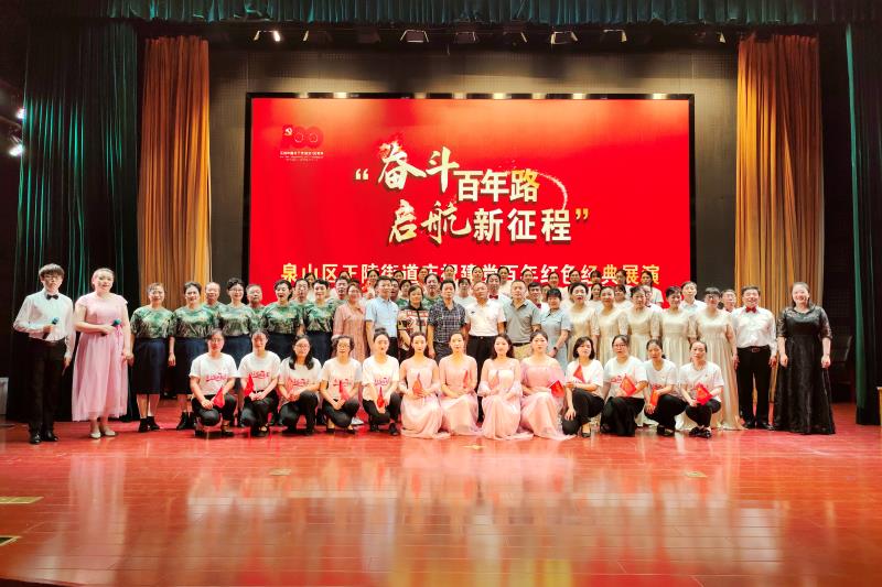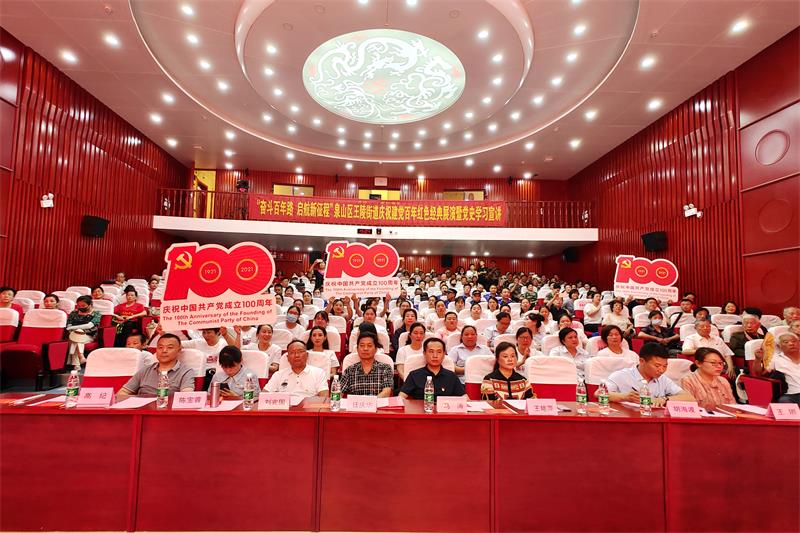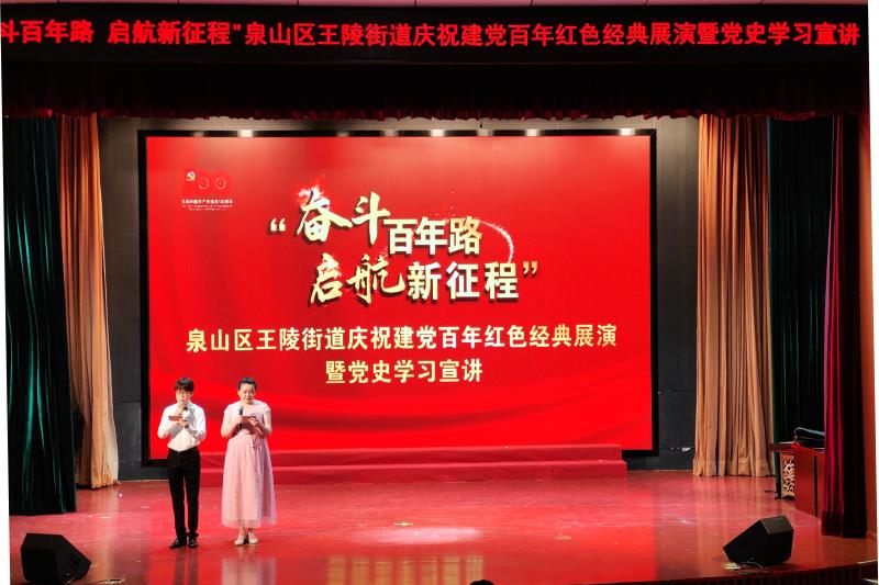 一首首红色经典让大家深深感受党的百年光辉历程,王陵街道党工委书记任庆华为街道 “光荣在党50年”纪念章获得者代表颁发纪念章,代表王陵街道党工委向他们表示热烈的祝贺并致以崇高的敬意,还给大家进行了“中国共产党为什么能”党史学习宣讲。演出最后,全场齐唱《没有共产党就没有新中国》,为整场演出画上圆满句号。