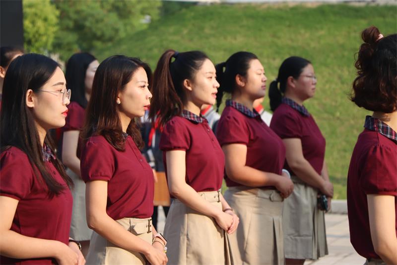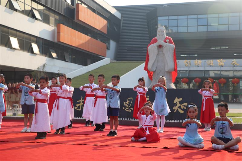 学生整齐站列身着汉服吟诵誓词,向孔子像作揖行礼,诵读誓词。励志成为谦虚谨慎、严格自省、品格高尚的树恩人。而后,学生表演了《君子九思》《孔子爷爷》等节目。