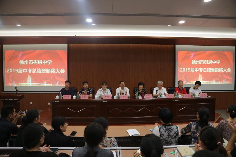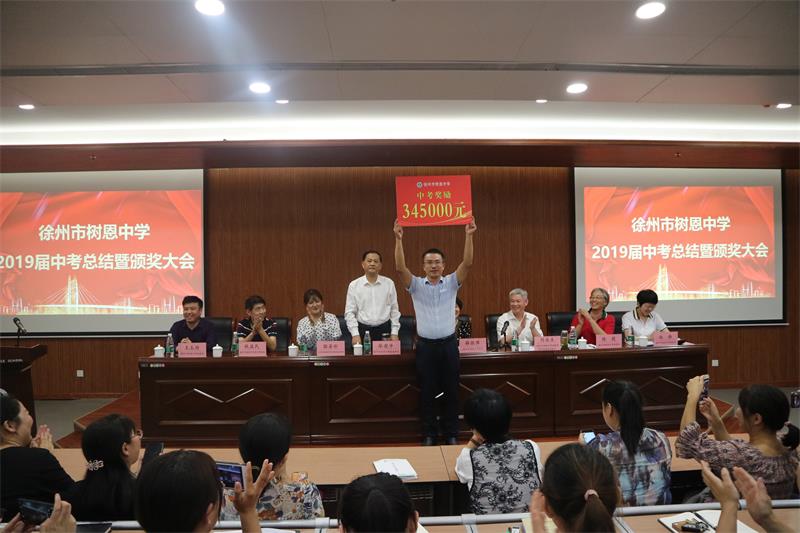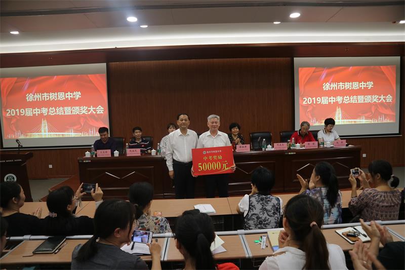 2019年9月27日下午,徐州市树恩中学2019届中考总结暨颁奖大会在高铁校区第一阶梯教室隆重举行,全体初中教师和高中部分教师参加了会议。刘永生校长主持大会。薛淑萍校长作了总结报告,对2019年中考工作进行总结,对2020年中考进行动员部署。徐州市开云官方端网站登录入口实业集团张爱萍董事长代表集团对取得优异成绩的中考团队颁发了奖金。原九年级部主任石院老师、现九年级部主任窦道洲老师、高铁校区八年级部主任卢振锦老师、高一年级部主任程建军老师分别代表年级部老师作了大会发言。