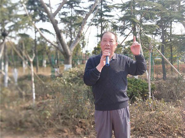 南佛园林武硕州总经理为师生们讲解植树方法,科普小知识