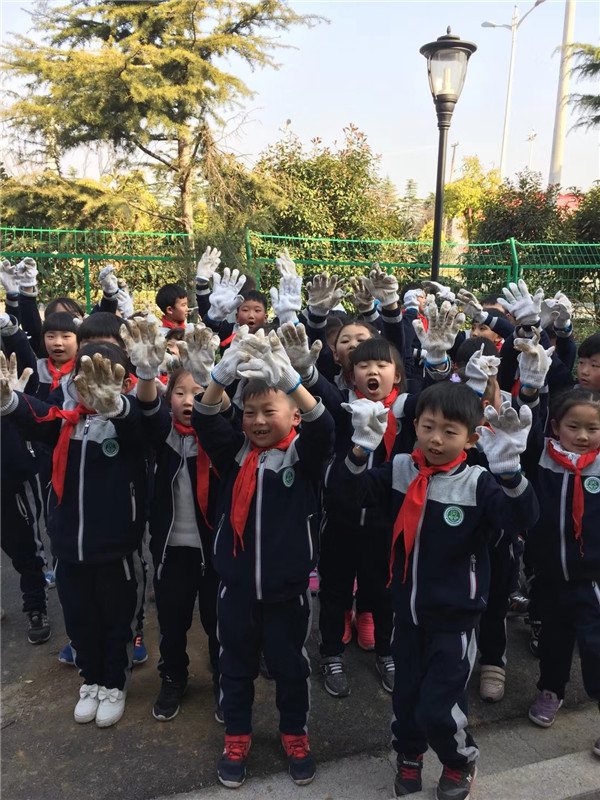 同学们身穿运动服校服,佩戴着红领巾,挖坑、植苗、填土、挂牌……那一个个忙碌的身影俨然成为一道风景线。